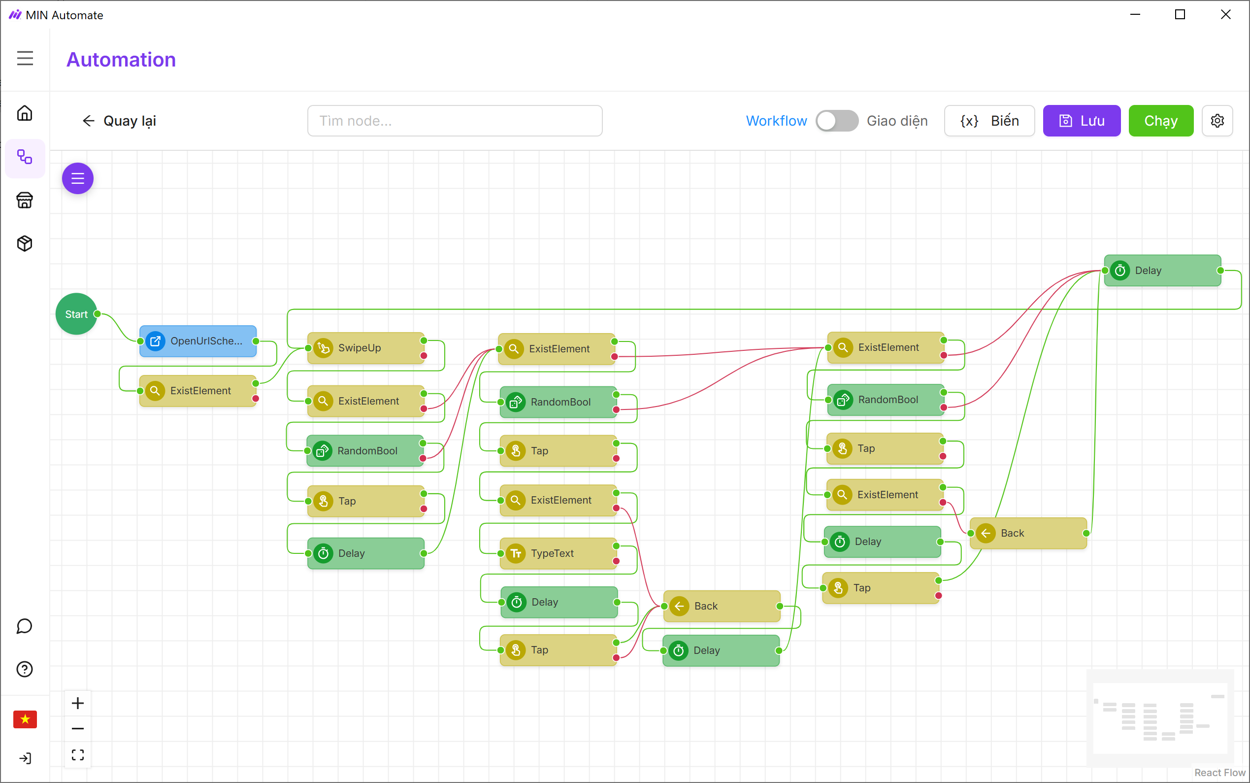 Phần mềm giúp bạn tự thiết kế ứng dụng tự động hóa cho Android, Browser và iOS. Sử dụng giao diện kéo thả trực quan với 60+ node có sẵn — không cần kiến thức code chuyên sâu.